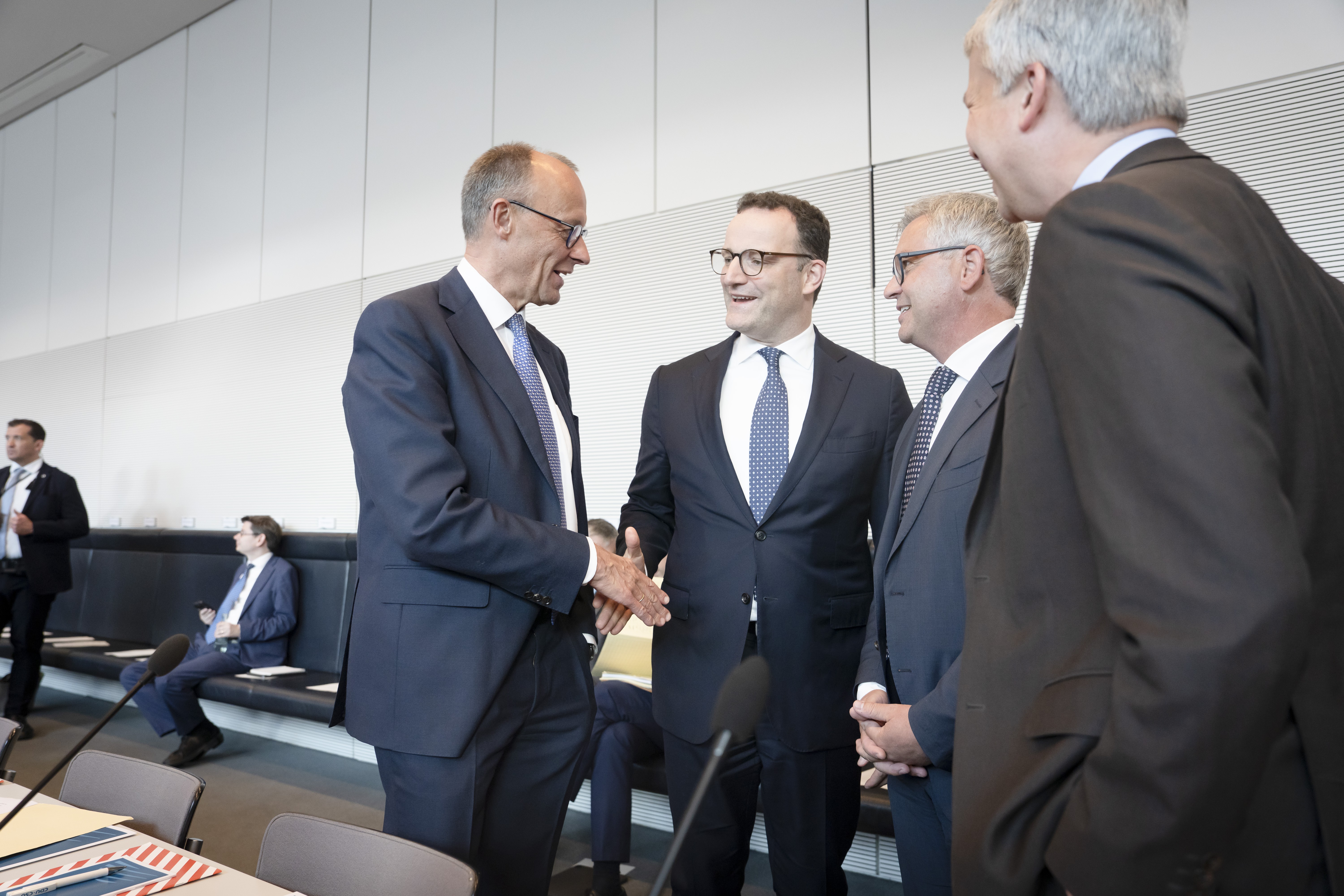 Auftaktbilder, Bundestag, Bundestagsfraktion, CDU/CSU, Steffen Bilger, Erster Parlamentarischer Geschäftsführer, Jens Spahn, Vorsitzender, Friedrich Merz, Bundeskanzler © ESDES.Pictures, Bernd Elmenthaler